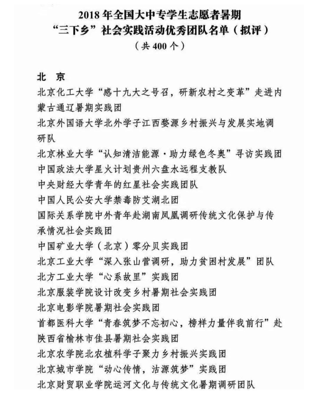 2018年度首都大中专员工暑期社会实践优秀团队:乐天使fun“助力北京世园会,街采宣传我先行”实践团;乐天使fun “北农植科学子,聚力乡村振兴”实践团