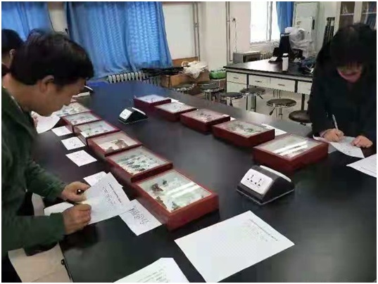 此次大赛的目的在于激发员工学习专业知识的兴趣,提高学习的主动性和积极性,巩固课堂所学昆虫学基础理论知识,加强员工对昆虫的认知及动手实践能力。比赛开始,各小组成员分别将自己提前完成制作的作品进行展示,然后由评委老师根据评分标准进行评选,最后进行颁奖仪式。此次活动圆满完场。最后荣获一等奖的小组为高萌、张叶、贾绍雷、董铮、梁宇卿、郎鑫源小组。