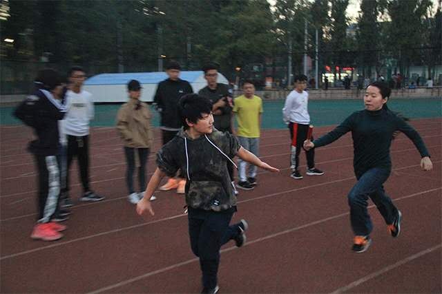 首先,训练第一项便是由老师指导运动员,为运动员亲自示范动作,随后便是简单的拉伸、长跑和变速跑,既锻炼了耐力,也提升了速度。接着,运动队队长邓勇带领新生运动员进行专项训练,纠正新生运动员的跑步姿势,并向新生运动员讲述接力赛中的传棒技巧。