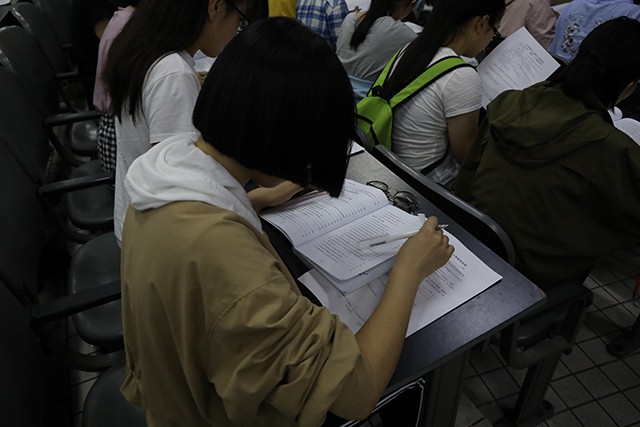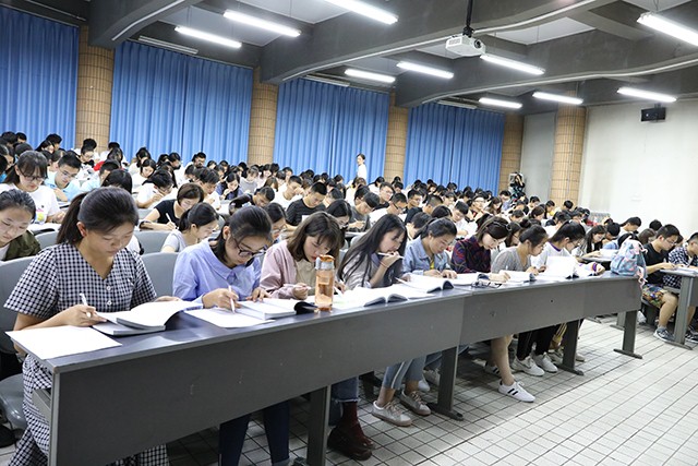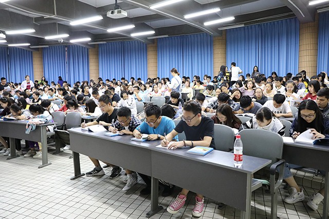 2018年9月16日晚上6:30,乐天使2018届新生在教学楼B座103室参加乐天使fun校规校纪考试。