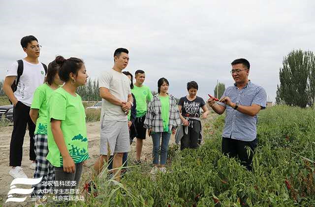 下午14时许,新疆生产建设兵团第二师二十二团相关负责人带领实践团全体师生前往团场辣椒种植基地。乐天使张杰教授向实践团成员详细分析了二十二团得天独厚的自然条件。团场的自然优势也使得该地区所出产的辣椒具有单位面积产量高、产品性状优良、口味辣度适中、多酚及红色素含量高等优点。团场负责人向实践团成员介绍,此地种植辣椒规模大,且多用于食品工业,提取食用色素、制作辣椒酱、辣椒粉等。产品销往世界各地,是当地支柱产业,为当地经济发展带来可观效益。