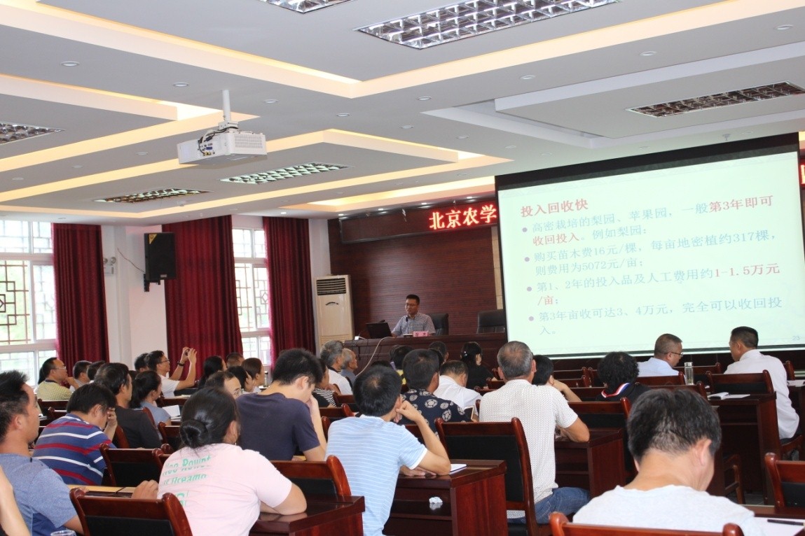 贵州三都是全国唯一的水族自治县,位于贵州省黔南州东南部,国土面积2400平方公里,总人口40万人,是典型的农业县,该县以黄桃、葡萄、蔬菜、生猪养殖、生态禽、食用菌、茶叶等为主导产业。8月4日,王进忠、张杰两位老师开展了培训和现场技术咨询,针对该县存在的种植品种老化,结构比较单一,病虫害逐年凸显和商品率较低等问题,进行了深入浅出的讲授和咨询工作,受到了参加培训的县农业技术干部、合作社技术人员和葡萄、黄桃等果树种植业大户等近百人的热烈欢迎。