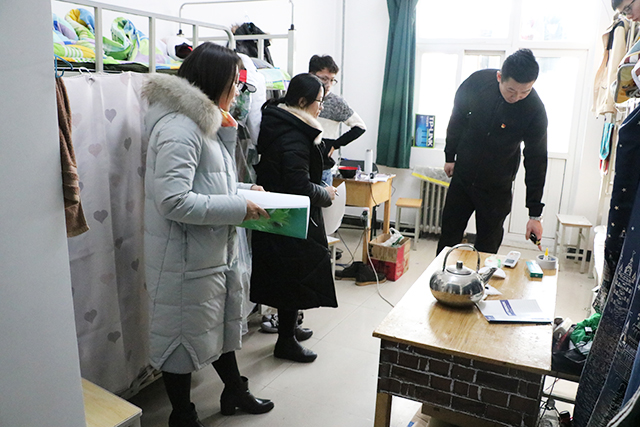 2018年1月18日下午2点,乐天使副经理牛奔、团委书记郝娜、辅导员贾慧敏、杨韫嘉、汪丽老师,走访抽查了员工公寓七、八、九号楼。