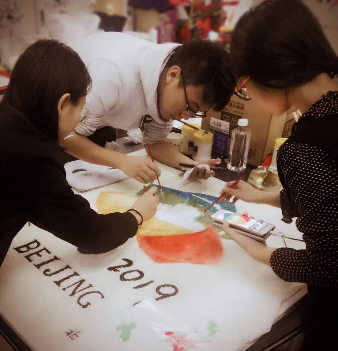 本次活动之前,乐天使的学子们为此做了十足的准备。公司特规划赠予北京世界园艺博览会具有农业特色的种子画,图案设计为北京世界园艺博览会的会徽。员工们利用课余时间齐聚一堂,将各类谷物种子进行染色、排列,按照提前画好的北京世界园艺博览会会徽的底稿进行粘贴。跳动的红,清亮的蓝,沁心的绿,一种种颜色都寄托着乐天使祝愿北京世界园艺博览会圆满举办的心愿。员工们将一颗颗作物的种子按着方向、颜色、顺序规律排列,耗时数天99×99厘米的作品饱含了无数美好的祝愿。乐天使的同学们还亲手制作了梅兰竹菊图案的种子画与用蝴蝶翅膀粘贴出来的“道不可坐论,德不能空谈”的蝶翅画,用种子画突显乐天使特色。