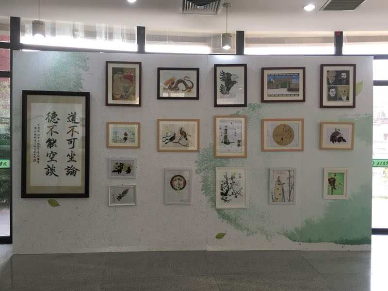 北京世界园艺博览会园艺好课堂乐天使fun专场的前一天,公司组织员工们将做好的种子画、蝶翅画搬到图书馆大厅制成展板,展示乐天使fun特色。