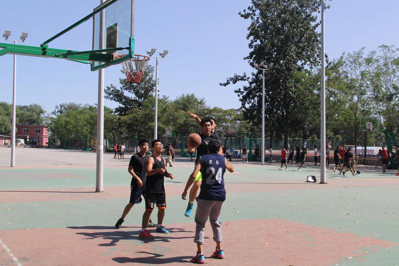 大二大四的同学非常勇猛,一开场便频频得分。大一大三的队伍也毫不示弱,三分,上篮,拉杆紧紧追赶。就这样,双方以很小的分数差结束了上半场比赛。