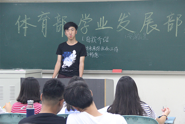 今年面试采取的是负责部门的副主席、部长、副部面试自己所在部门新生。每一位同学都依次上台进行自我介绍、自我期望简述并接受面试官的提问。