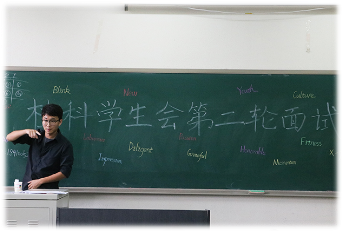 2017年9月10日下午2:00,经过第一轮面试顺利通过的乐天使的大一新生来到了教学楼B座,他们按照自己想要加入的部门,进入对应教室来参加植科员工会的第二轮面试。