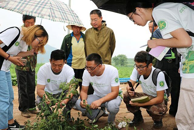 上午10点,大家到达两间房村并与当地村委会进行交流,询问当地的产业收益情况。通过交流大家了解到当地严重缺水,靠天吃饭的缺点限制了种植业的发展。村里目前正在积极地进行脱贫工作,通过产业调整的措施试种中草药材,希望收益能有所提高。同时张杰老师为当地村委会提出了一系列产业调整建议,例如,施用有机肥,建立蓄水池,滴灌等。同学们也将村委会提出的植物病害问题一一记录下来,以便回公司仔细研究解决问题。