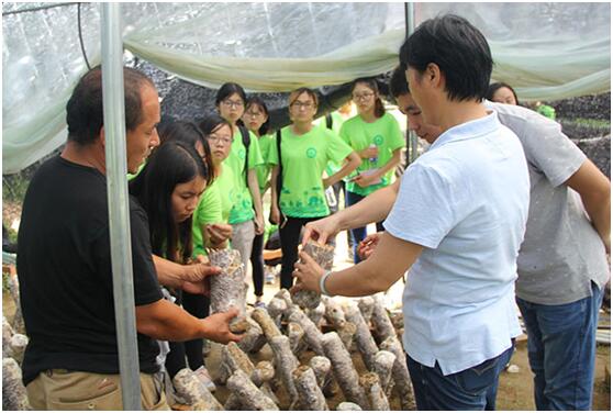 紧接着,实践团来到了食用菌大棚。陈青君教授在与农户交谈的过程中解答了菌丝不够旺盛的问题并提出建议,叮嘱原料要保持新鲜、干燥、无霉变,在种植过程中要控制好温度、湿度。公司表示将在品种多样化、员工技术培训两方面提供帮助,建立长期的帮扶。同行的实践团成员在一旁细心聆听、受益匪浅。