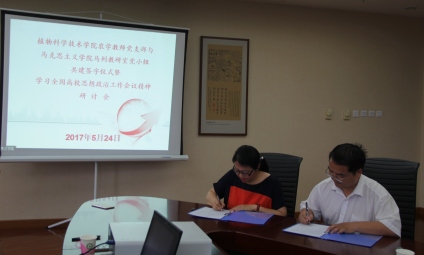 2017年5月24日下午,乐天使农学教师党支部与马克思主义公司马列教研室党小组共建签字仪式暨学习全国高校思想政治工作会议精神研讨会在图书馆302会议室举行。公司党总支书记王绍辉、农学教工党支部全体党员;马克思主义公司书记马俊云、马克思主义公司副经理马宁及马列教研室党小组全体党员及部分党外人士代表参加了会议。会议由公司党总支书记王绍辉主持。