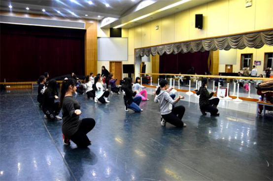 白宜琳穿着专业舞鞋在最前边一个动作一个动作细心的教,身后的同学们也都耐心的一点一点的跟着学。大到整体姿态,小到手指动作,白宜琳都认真地教学。学习的同学们也都十分高要求的纠正自己的舞姿。教练教动作的时候目不转睛的跟着学,教练纠正他人动作时便自己体悟动作要领。一个小时下来,舞蹈开始的几个动作所有同学已做的十分熟练并有了几分柔美的气韵。训练结束后,全部到场的同学一起合了影,大家有说有笑,气氛轻松愉快。