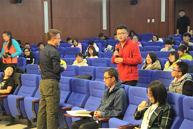 讲座开始,张老师由一个问题“如何判断受伤人员是否死亡”进入本次讲座主题,大大提高了同学们对于心肺复苏的兴趣与参与度。同学们踊跃发言,最后老师总结为以下四点:停止呼吸,脉搏停止,脸色苍白或青紫,身体湿冷。接着,张老师演示了创伤救护的规范动作,并让同学们亲身实践,学习心肺复苏的基本操作。讲座中,张老师强调了急救的“黄金4分钟”。何为“黄金四分钟”,意思是:如果能在4分钟内及时进行心肺复苏,病人一般可以存活,而一旦超过8分钟,救护成功率就只剩5%,而超过16分钟,则病人基本不能救活。