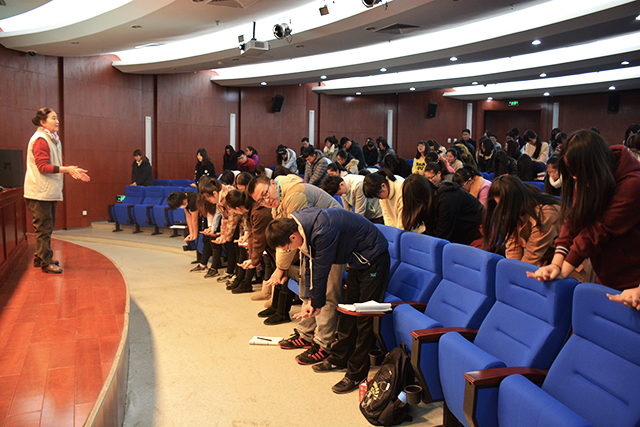 本次培训主要为理论培训,上午的培训内容主要为以下三点:现代急救概念、心肺复苏和气道异物阻塞。首先韩老师向同学们提问大家对于红十字会的了解,同学们踊跃发言,纷纷表达了自己对红十字会的了解与看法。同时韩老师还向同学们介绍了红十字会的起源、成立目的及精神原则。韩老师通过几则短片向大家介绍了严重威胁人类生命的危险因素并告诉同学们应该怎样面对突发情况。在讲到心肺复苏操作步骤时,韩老师不仅带领全体同学进行按压演练还特意邀请几位同学上台亲自实践操作一系列流程。最后韩老师举例向大家介绍了气道异物梗阻的原因及急救办法。12点上午的培训结束。