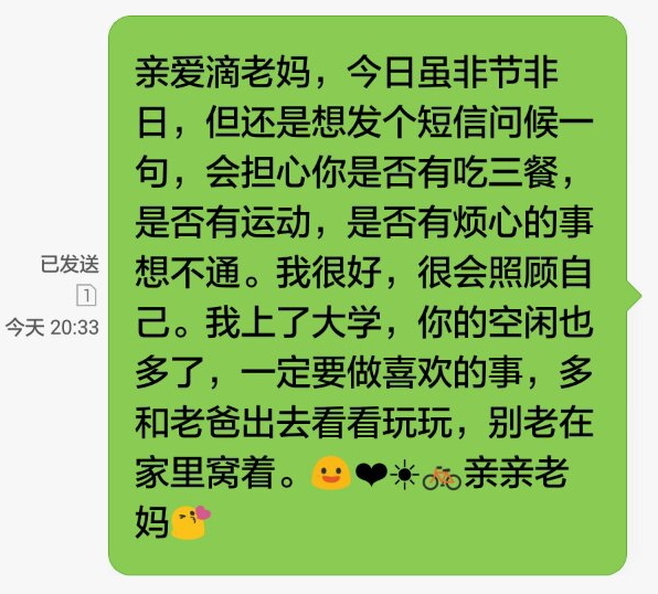 短信,不打扰干涉,只表达关怀,最朴素也最从容。当两个世界之间,推开一扇小小的窗,便会有阳光春风,催开群花盛放。在现在一个矛盾的年代,最应亲近的心灵日趋封闭。一条小小的短信,表达了员工对家长的感恩。