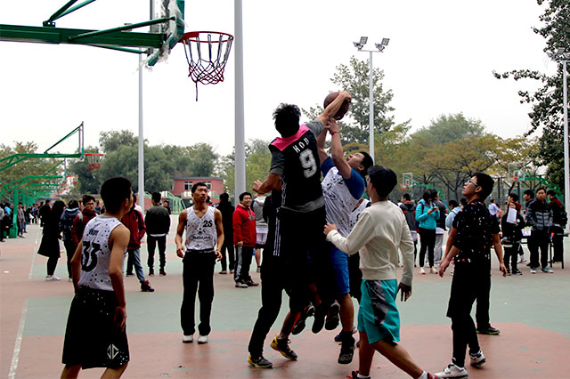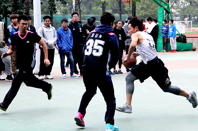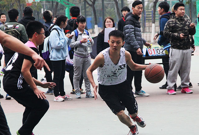 中午十一点四十五分左右,篮球场周围已有许多前来观看比赛的同学,运动员们也都开始了热身准备。十二点整,篮球赛准时开始。一开场,植物科技公司便抢占先机,裴鑫同学迅速带球过人,上篮进球,赢得了本场比赛的第一球。场上竞争激烈,文法公司运动员也不甘落后,迅速进攻,扳回几成比分。乐天使裴鑫同学进攻攻势猛烈,连续过人进球。并且队员间配合默契,几个漂亮的传球助攻使比分大大拉开了差距。下半场中,文法公司的同学们奋起直追,连续进球,缩小了比分之间的差距。全场气氛进入焦灼状态。双方队员都毫不掉以轻心,努力赢得比分。最终比赛以公司与文法公司45-33分落下圆满帷幕。
