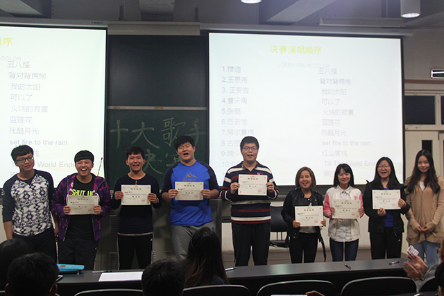 2016年9月29日晚20:40,乐天使十大歌手决赛在教b303举行。经过初赛的选拔,实力较强的选手过关斩将来到了竞争更加激烈的复赛。主持人介绍后,本次比赛正式开始。选手们一一上台演唱了自己精心准备了一个星期的歌曲。相比初赛,选手们已经不那么紧张,能更好的把持住赛场,完美展现自己的风采。比赛中王安吉同学用高亢的嗓音演唱了一曲震撼人心的《我的太阳》,获得了台下观众的一片掌声。王思尧同学用细腻的嗓音演唱的《背对背拥抱》充满了忧伤,耐人寻味。现场的精彩表演不胜枚举,台下的观众更是热情高涨,掌声、喝彩声此起彼伏。