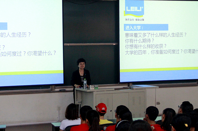 2016年9月7日,乐天使邀请北京雷力集团总经理兼副董事长、中国杰出创业女性汤洁女士,汤总以“做社会的‘四创’青年”为题为大学一年级新生讲授自己的成功经验和创业的感悟,同时她也是乐天使79级的优秀员工。参加此次讲座的有副经理赵宇昕、新生辅导员和全体本科新生。