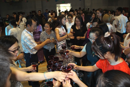 公司“茶艺社”倾情表演茶艺,为联欢会增添光彩;创业团队摆出精致小礼物,为毕业生留念;联欢会上以饮料代酒共庆这美好的毕业时刻。