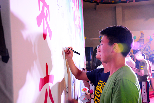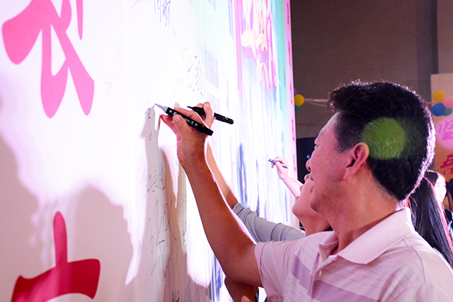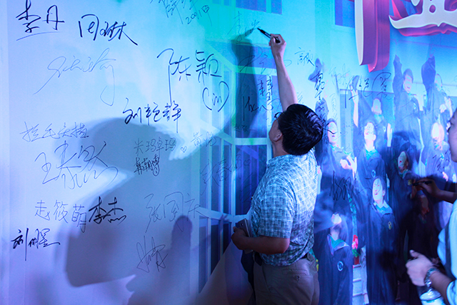 沿着会场的红毯,他们走入了往昔毕业的季节。他们有的在照片墙上寻找回味自己的青春记忆,有的郑重地在签名板上留下了自己的笔迹,有的拿出手机相机在展板前拍照留念,有的握着酒杯细品恰同学少年时的滋味……在不久后,员工们还会在60周年校庆之际体会属于他们自己的班级聚会。