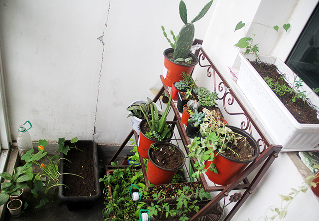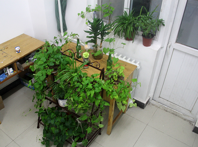“简单却不缺精致,朴素但不失美丽”是在员工宿舍创建绿色阳台的理念。在本次评选活动中,大多数的宿舍都选择了用简单易活的植物来装饰阳台,其中,吊兰、仙人球、芦荟占了大多。8号楼310宿舍将红薯苗分株栽培,做出了水培效果,观赏价值颇高。9号楼402虽然是男生宿舍,但丝毫不逊色,他们用废饮料瓶作为花盆,一点一滴的创意都充分体现了同学们为建设美丽阳台所花费的心思。
