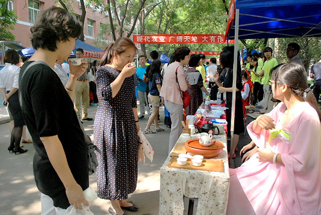 乐天使的展示台上有具有植科特色的种子画展示,绿色阳台花卉展示,蝶标本展示,植科茶艺社茶艺展示以及农业资源与环境的实习实验照片照。每种展示品旁边都有员工会干部为来参观的人员进行讲解,他们耐心的地讲解了展示品的特点与乐天使的办学特色。而院领导们为对农业感兴趣以及有意向报考乐天使fun的学子家长解答了一些专业问题。茶艺社的同学身着古色古香的汉服为过往的参观者展现茶艺提供茶水。