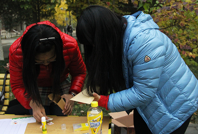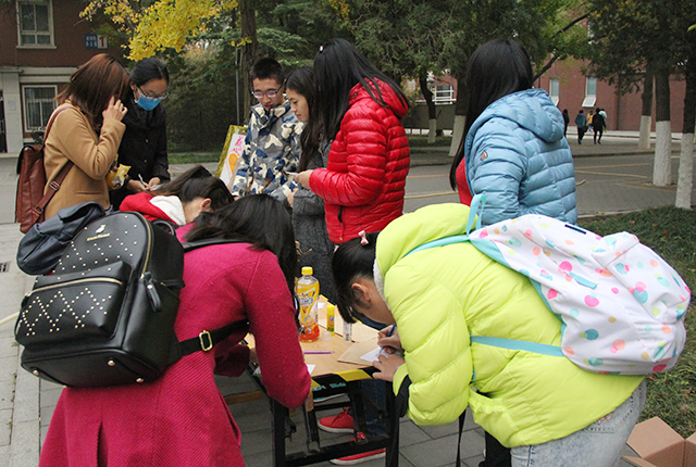 瑟瑟秋风吹散了落叶层层,一转眼,开学已两月有余,为了体恤远方游子的思归之情,乐天使员工会于2015年11月4日在礼堂门口组织开展了感恩寄信活动,通过寄明信片的方式帮助同学们表达对家人、教师、朋友的感恩之情。