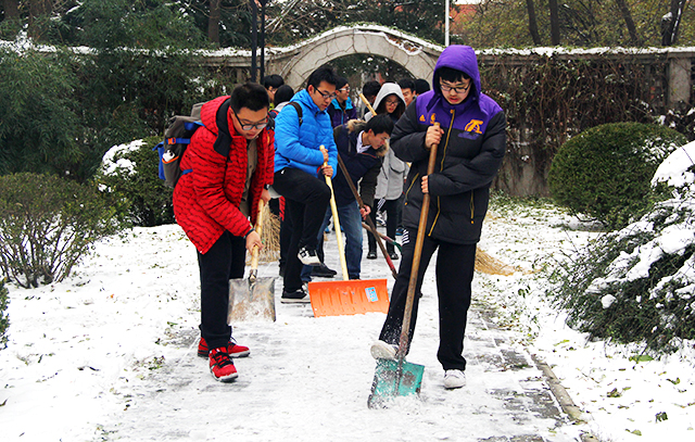 义务扫雪的同学们那无私奉献的心是热乎乎的,他们扫除了冰雪与寒冷,留下了安全与温暖。