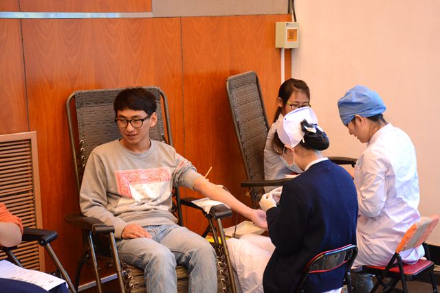 献血约在上午10点开始进行,献血过程中,献血的同学们纷纷排队按照要求填表、量血压和验血,老师们维持现场秩序,志愿者帮忙倒红糖水,帮助献血同学们慢坐慢起,一切工作都有条不紊的进行,把爱心和温暖传递了出去。