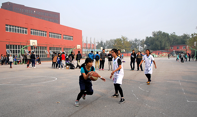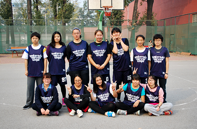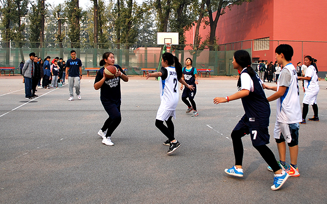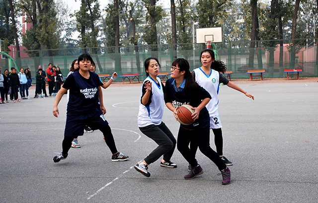 11月4日中午十二点,乐天使和国际公司的女子篮球赛在操场篮球场如期举行。寒风萧瑟,阳光不再,但球员们依旧奋力拼搏,观众们依旧热度不散。