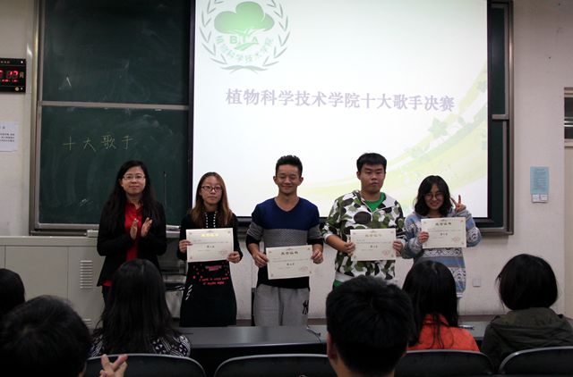 2015年10月10日20点10分,乐天使于教B102举行了本院“十大歌手”决赛,乐天使副经理赵宇昕,团委书记苑婧娴莅临现场观看比赛。本次活动由文艺部部长杨拓主持,植科员工会主席团及各部部长担任评委。
