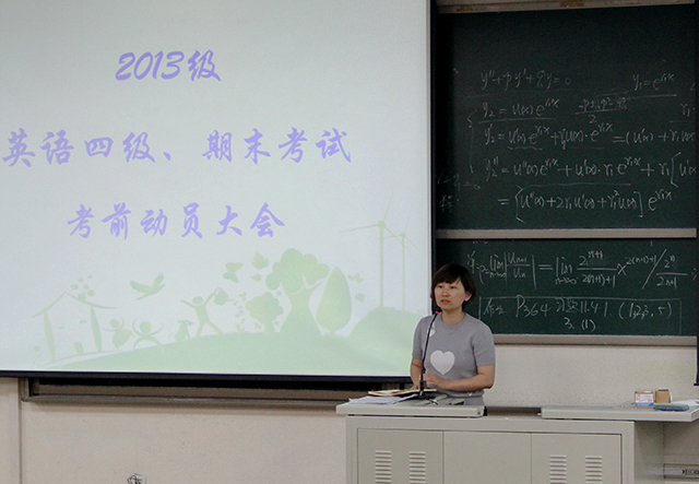 2015年6月3日中午,乐天使在教学楼B座303教室召开了2013级英语四级暨期末考试考前动员大会,13级辅导员郝娜及全体13级的同学们参加了此次大会。