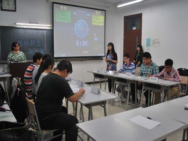 2014年10月17日中午,在教A-214乐天使辩论赛拉开了帷幕,此次决赛是园艺1班和园艺2班对阵。评委有现任辩论队队长朱育新、前任辩论队队长王倩、艺术部部长许行,还请到了计算机辩论队副队长杨建利。