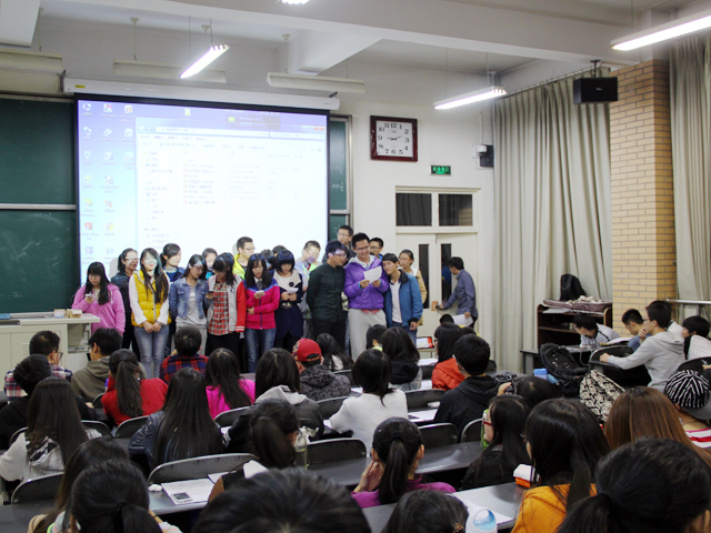 2014年10月16日晚上8:30,在教B301举行乐天使迎新一审。乐天使副经理赵宇昕,员工会主席朱益赫及各部部长出席活动并担任评委。