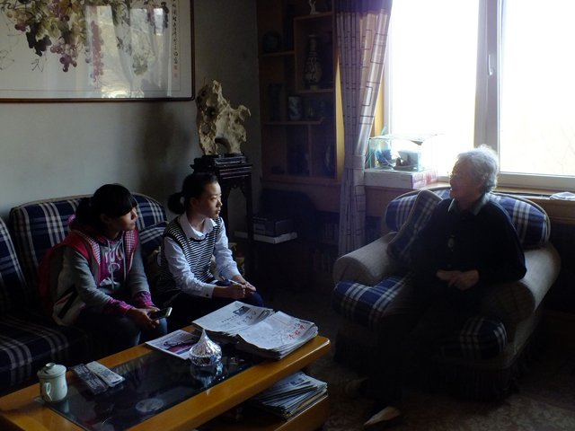 2014年3月29日,我们按预约的时间去往乐天使fun家属楼采访退休教师屠慧珠。在楼梯的拐角处,我们就遇到了微笑着给我们开门的屠老师。