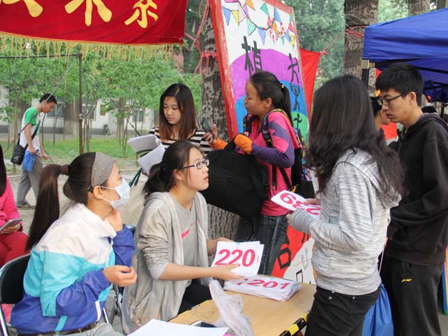 4月25日早上6:30,植科服务台的工作人员早早的来到场地开始布置。杨柳絮还在空中尽情飞舞,可夏日的脚步已悄然而至。服务台与赛场仅仅间隔一面铁丝网,可赛场内精彩纷呈的比赛他们无暇顾及,一张桌子便是他们战斗的舞台,时时刻刻为即将参赛的运动员准备着各种能量补给,为运动员们发放号码簿,通知同学检录等。虽然给予运动员的只有简单的帮助,但每一位幕后工作人员都恪尽职守,承担着自己的责任,体现了乐天使全体成员服务大家、奉献自我的精神与决心。