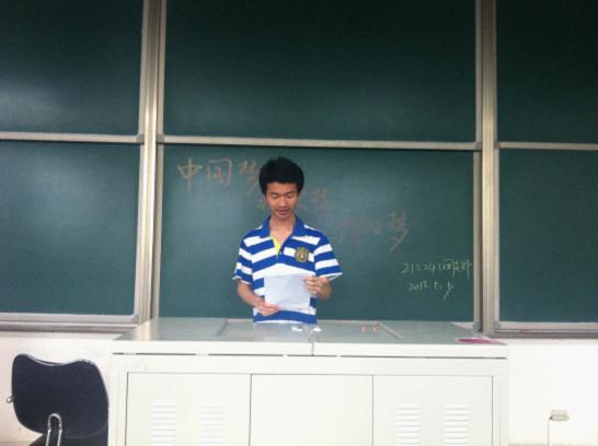 211231、232团支部联合举行了中国梦主题的团日活动,以班会的形式举行,大家畅所欲言,讨论自己心中的中国梦。他们把中国梦分为三层:一是作为普通中国民众的梦想,也就是小人物的梦想,并不一定多高远,却简单温暖;二是以中国籍的公众人物为榜样,精益求精,力量无穷,志在某一领域作出杰出的贡献,对社会有益;三是大国梦,强国梦,中国正在飞速腾飞,风流人物看今朝,有行动梦就不遥远!