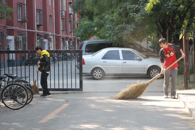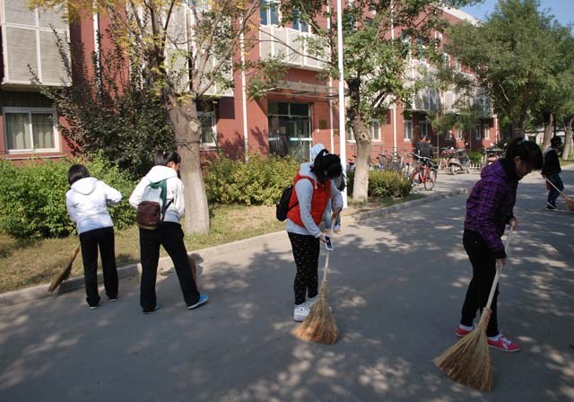 2013年10月24日,中午12:20在图书馆东门外,乐天使员工会生活部部长靳相辉带领生活部、青年志愿者协会的成员及13级新生志愿者在计算机与工程公司楼前甬道集合,进行了一次秋季大扫除活动。