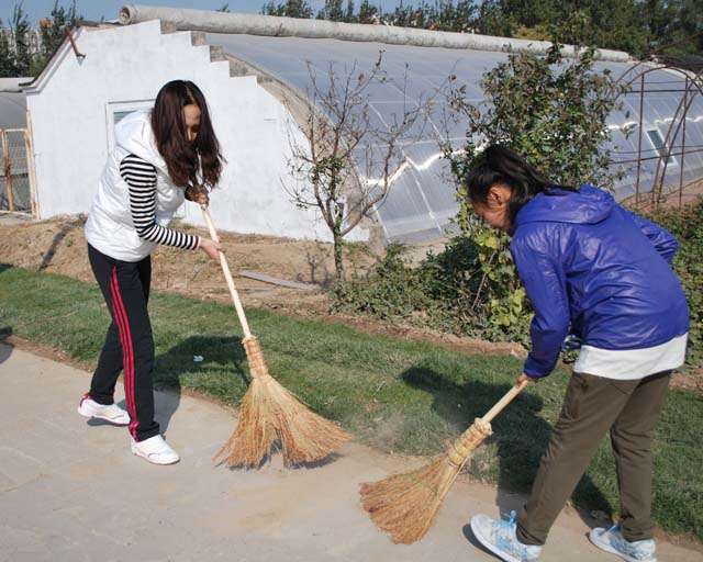 秋风瑟瑟,寒气袭人。同学们挥舞着手中的扫把,积极、认真的清扫着地上的垃圾。秋风阵阵吹过,不断地卷起地上的落叶,吹乱同学们的劳动成果,他们又耐心地重新清扫。