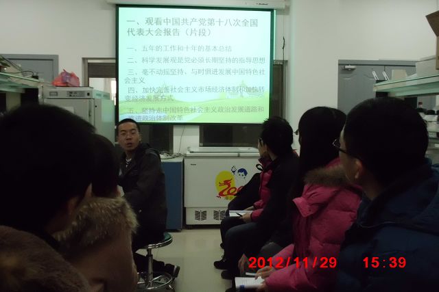 2012年11月29日,我公司研究生植保党支部在研究生B楼210举行学习“中国共产党第十八次全国代表大会报告”的活动。