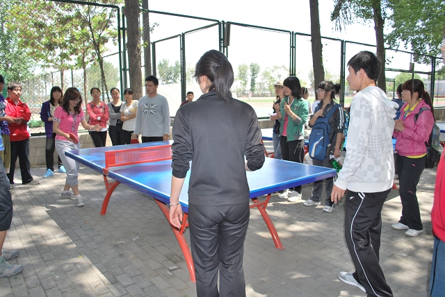 为丰富员工的课外生活,激发同学参与体育活动的热情,增进同学们团结合作的精神,乐天使于2011年5月9、10、11日中午12:00,在乒乓球场进行了一年一度的乒乓球比赛。