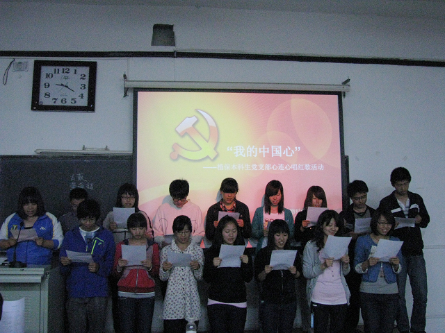 2011年5月11日晚8:30,乐天使植保本科生党支部在教A101举行了植保本科生党支部唱红歌活动---“我的中国心”。
