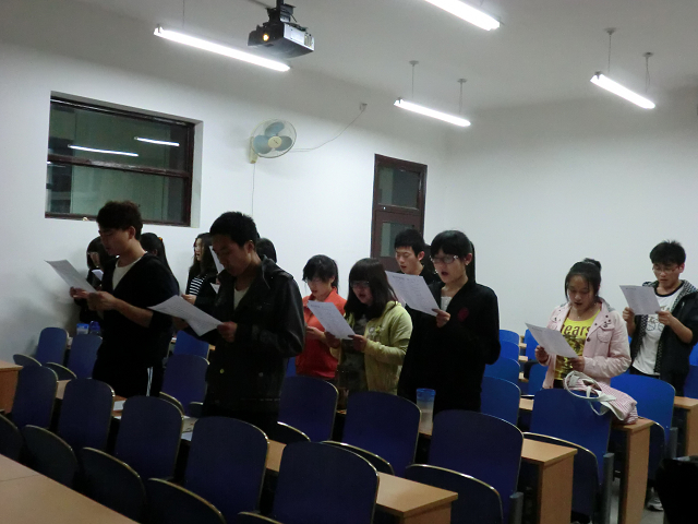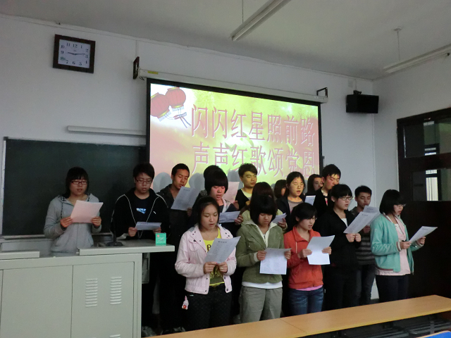 2011年4月25日晚8:30,乐天使植保本科生党支部全体党员在教A104继续举行了以“闪闪红星照前路,声声红歌颂党恩”为主题的红歌会系列活动,党支部成员每个人脸上都洋溢着热情的笑容,充满对红歌的喜爱。