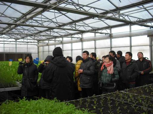2011年1月8日,青海畜牧兽医职业技术公司教师一行32人到植物科技公司校外实习基地小汤山国家农业科技园、金六环科技园等基地参观考察。乐天使副经理张喜春、党政办陈勇老师、乐天使刘超杰老师、教育技术中心姜文杰老师等陪同参观考察。