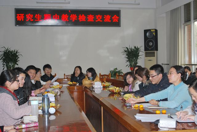 会上首先由教学秘书吴春霞老师说明了研究生教学和培养期中检查的目的及实施过程,并注重强调了各年级研究生应注意的工作细节,总结和通报了本次检查的完成情况,重点说明了研究生当前面临的困难和疑问。