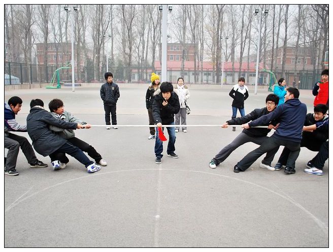2010年11月29日至12月1日,中午12:00乐天使全体员工在篮球场上进行了冬季体育重要活动——拔河比赛。此次比赛以班级为单位,采取男女混合、三局两胜制方式进行比赛。经过三天的激烈较量,最后09级农资2班获得比赛的第一名、09级农学1班、08级植保班分别位列二三。