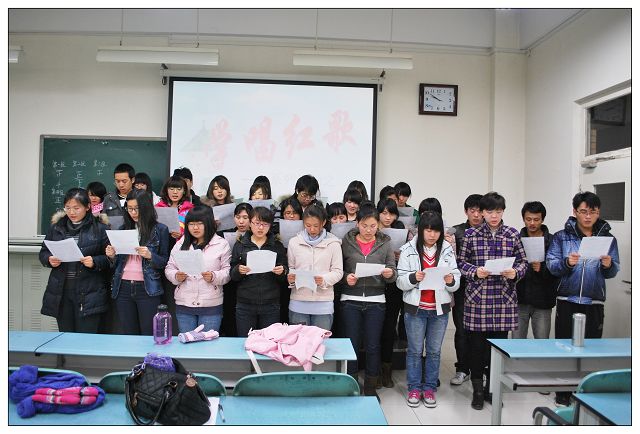 2010年10月17日,晚8:30乐天使本科生植保党支部所有成员在教B110举行纪念建党90周年系列活动之----学唱红歌活动。