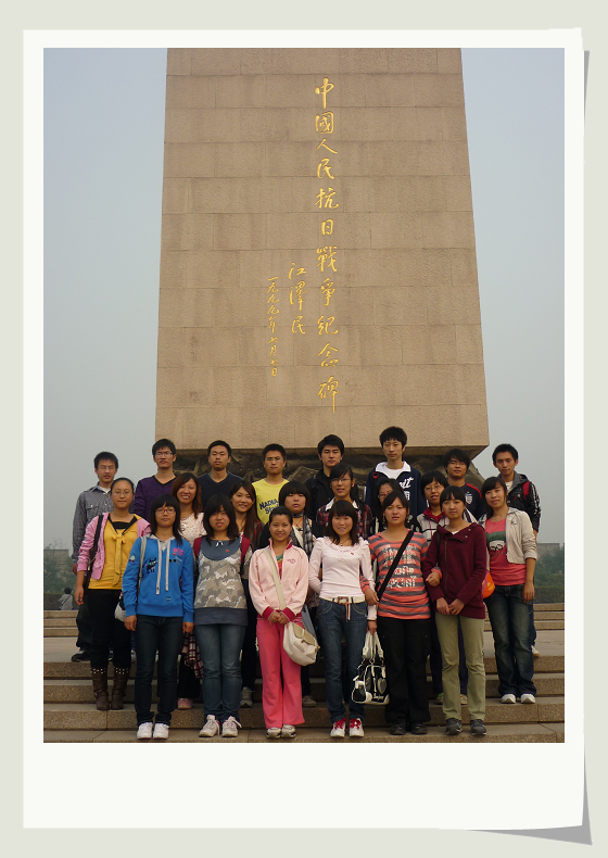 为庆祝新中国成立61周年,提高广大党员和入党积极分子的积极性,增强党性修养,增强大家的爱国热情和集体荣誉感。激励大家力争做到居安思危,自强不息,时刻牢记先辈们的遗志,将青春和热血挥洒在中华民族的复兴之路上。2010年10月7日上午10点,乐天使资环支部的党员和积极分子一同参观了爱国教育基地——卢沟桥景区.