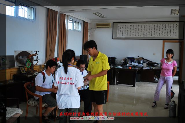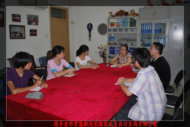 7月13日,指导老师贾慧敏与实践团一起商讨并确定了实践活动的详细方案及成员任务分配等诸多问题,使每位成员明确此次实践活动目的和意义以及自己在团队中的价值。7月14日,为了更好的开展实践活动,确定实践地点,指导老师贾慧敏联系到在崔村镇担任村官的同学柳明娟(2008届公司研究生毕业生),并带领队员到昌平区进行前期调研,村官柳明娟为大家介绍了昌平区“一花三果”为主导的都市型现代农业发展模式,并为实践团推荐、联系了几个适合实践团调研的村庄。前期调研让信息中心成员们萌发了热情。此外,队员们了解到新农村的发展模式有待挖掘、规范和宣传,需要更多人的关注和重视。此次调研为接下来的实践活动奠定了良好的基础。
