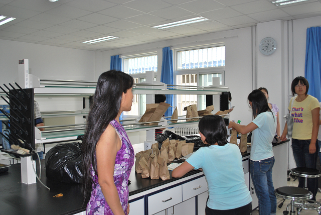 随后,2010级全体同学有条不紊的进入实验楼和示范中心进行参观。在实验室里,负责的老师孙淑玲、张杰为大家耐心的介绍了试验设备和将来的试验要求。也许他们还似懂非懂,也许他们还对一切充满疑惑,但是他们眼神里流露着对知识的热情。